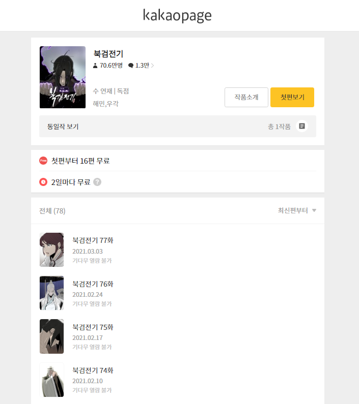 카카오페이지에서 연재중인